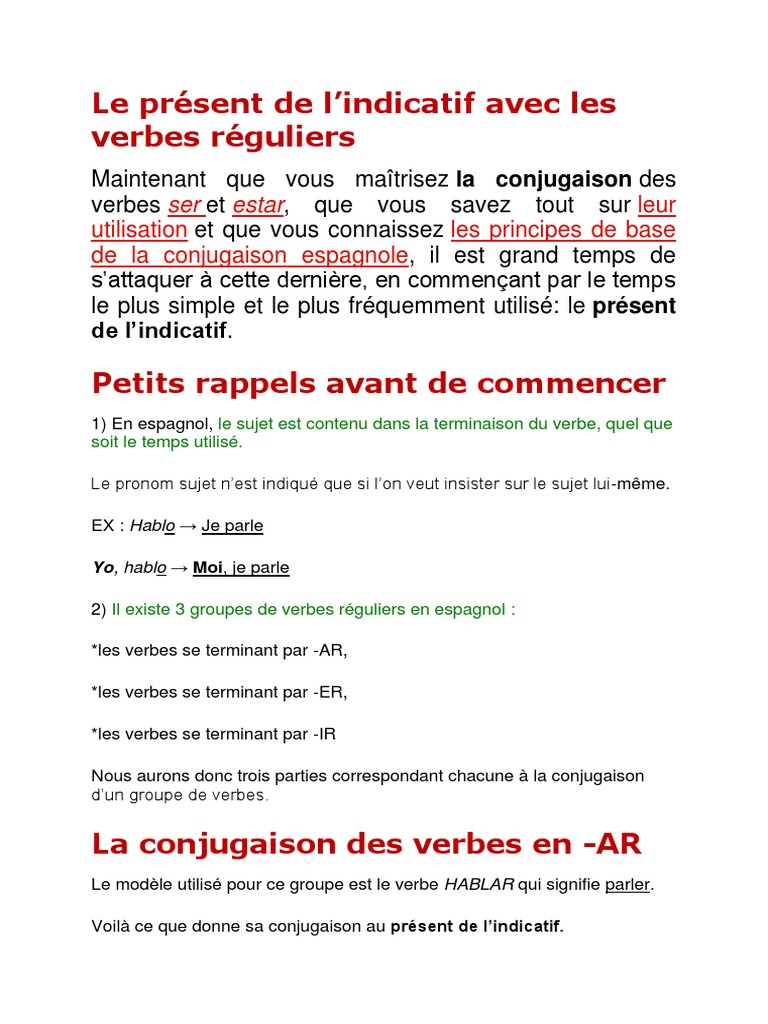 Les Verbes La Conjugaison Espagnole