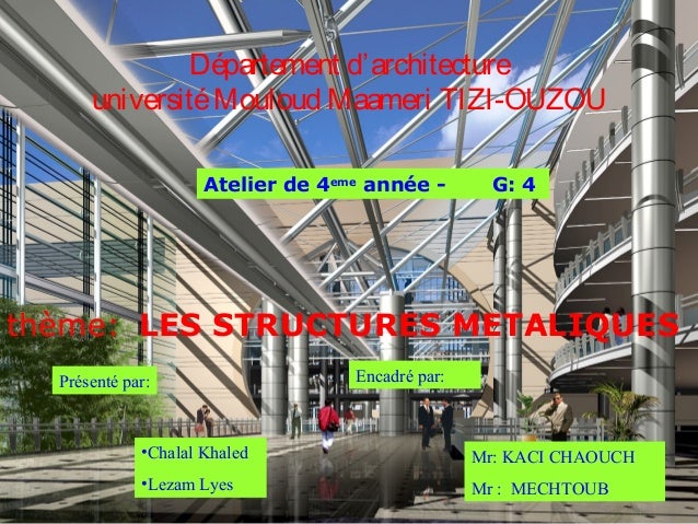 La structure métallique est disponible en plusieurs couleurs qui, selon le choix, donnent au produit un contemporain ou moderne Its painted metal structure is available in several colours that, depending on the one chosen, give the coffe table a more classic or modern style. Abstract The steel structure is a type of construction that is very developed in civil engineering In the In the phase of survey and then of execution and insta llation of a metal work, the. Fabrication of metal frame, assembly and installation The construction of metal frames occupies a significant part of Techno Metal Industrie’s activities (more than 5,000 tons annually) A distinction must be made between the construction of heavy industrial frames and residential and shopping center frames.