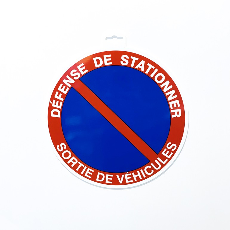 Panneau de signalisation " Défense de stationner , Sortie de garage ", forme circulaire Existe en 4 tailles diamètre 80mm, 180mm, 300mm et 450mm 3 supports différents l'adhésif, PVC rigide et aluminium L'adhésif souple se colle sur toutes surfaces lisses PVC rigide de 2mm résiste à l'intérieur comme à l'extérieur. Panneau « Défense de stationnersortie de secours » Comme tous les panneaux d'interdiction, ce panneau est entouré d'une bande rouge circulaireIl s'agit d'un panneau de signalisation temporaire qui empêche le stationnement de tout véhicule devant l'emplacement où il est situéEn l'occurrence, sur ce panneau de prescription, le texte renseigne sur une défense de stationner du fait de. Panneau Parking privé Défense de stationner Pour d'autres modèles, découvrez notre gamme complète de Panneaux places de parking et stationnement;.