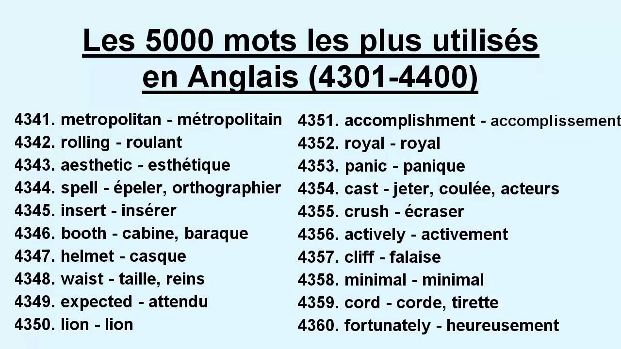 Les 5000 Mots Les Plus Utilises En Anglais 4301 4400 Youtube