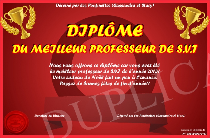 Diplome Du Meilleur Professeur De S V T
