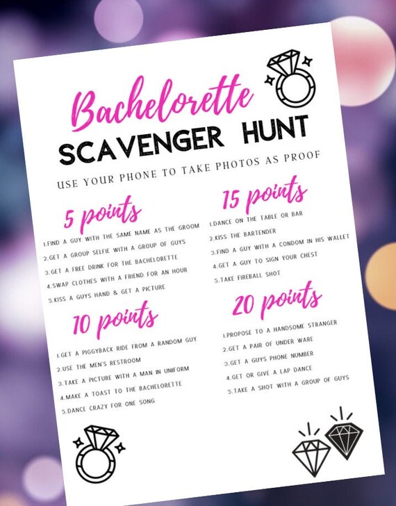 Bachelorette Scavenger Hunt Game Printable 8 5 X 11 Etsy