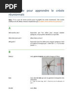 Créole et français de petits écoliers réunionnais, prolégomènes à l’évaluation de langues proches Evelyne Adelin To cite this version Evelyne Adelin Créole et français de petits écoliers réunionnais, prolégomènes à l’évaluation de langues proches Linguistique Université de la Réunion, 08 Français tel. Le créole réunionnais est un créole à base lexicale française parlé à La RéunionIl est issu surtout de la langue d'oïl (principalement des dialectes du nordouest comme le français, le normand et le gallo) mais a également subi quelques influences des langues d'autres ethnies venues s'installer dans l'île, telles que le malgache, l'indoportugais et le tamoul 2. Lexique Créole Reunionnaisfrançais, anglais, italien, allemand, espagnol Cet article comporte des éléments adaptés ou copiés de l’article de Wikipédia en français Créole réunionnais, sous licence CCBYSA 30 Créole réunionnais modifier le wikicode Étymologie modifier le wikicode.