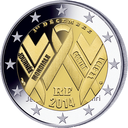 L'intitulé exact de la seconde pièce de 2 Euro commémorative émise par la France en 14 est « Journée Mondiale de la Lutte contre le SIDA » Sa sortie est prévue pour le 24 novembre 14, quelques jours avant le 1er décembre, date de la journée mondiale de la lutte contre le sida, organisée à l'initiative de l'UNESCO.