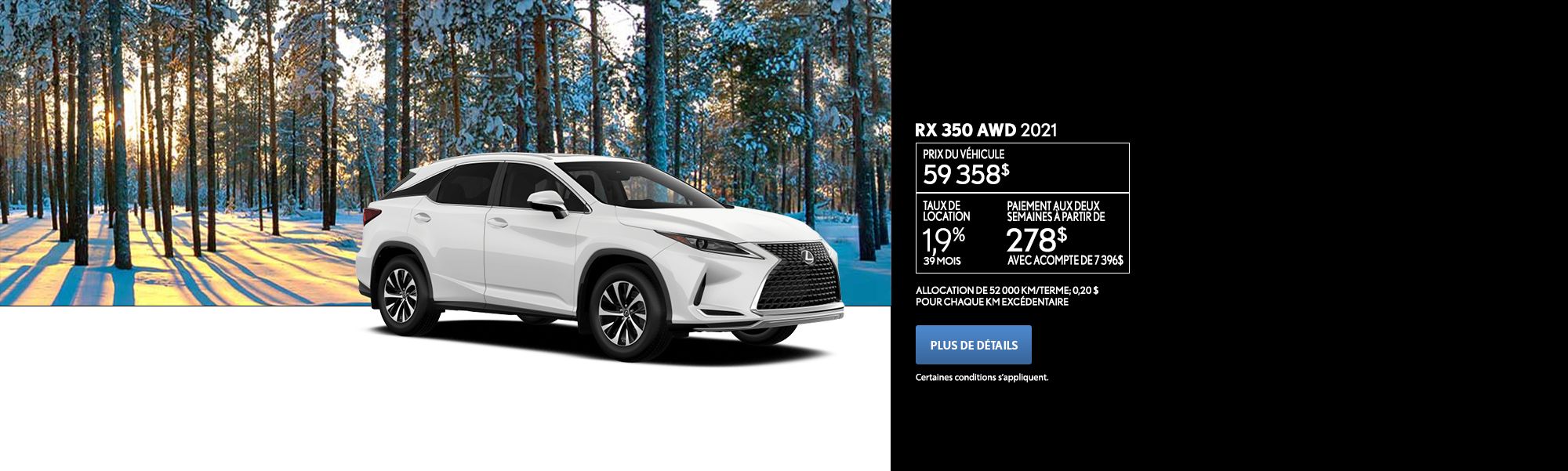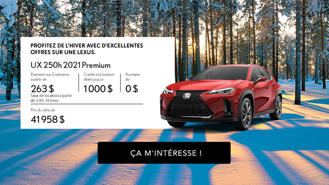 * Spinelli Lexus Lachine ensures that its advertisements are in conformity with all applicable regulations However, some errors may remain due to factors outside of our control In all cases, please verify the offer with our dealership to ensure price and vehicle conformity It is not an offer to form a contract.