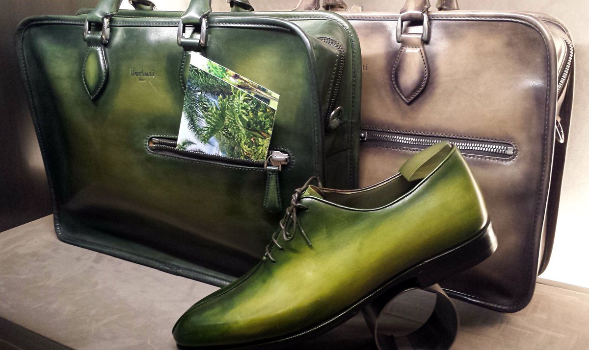 Oliver Peoples Custom Acetate Color Nero Verde Is Inspired By The Rich Tonal Colors Of Berluti Distressed Leather Green