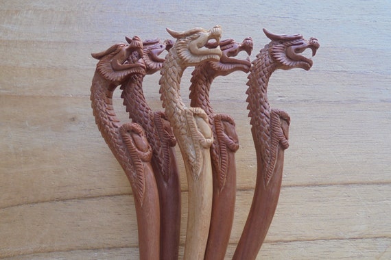 Dragon Hair Sticks Dragon Carving Wood Hair Sticks Hair Etsy