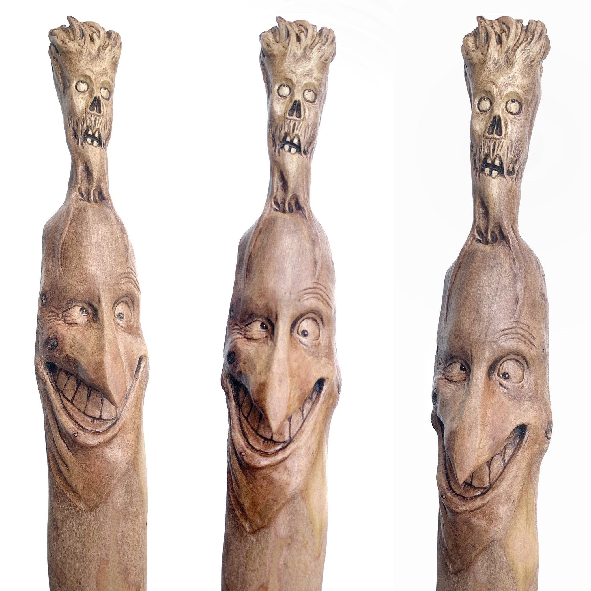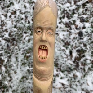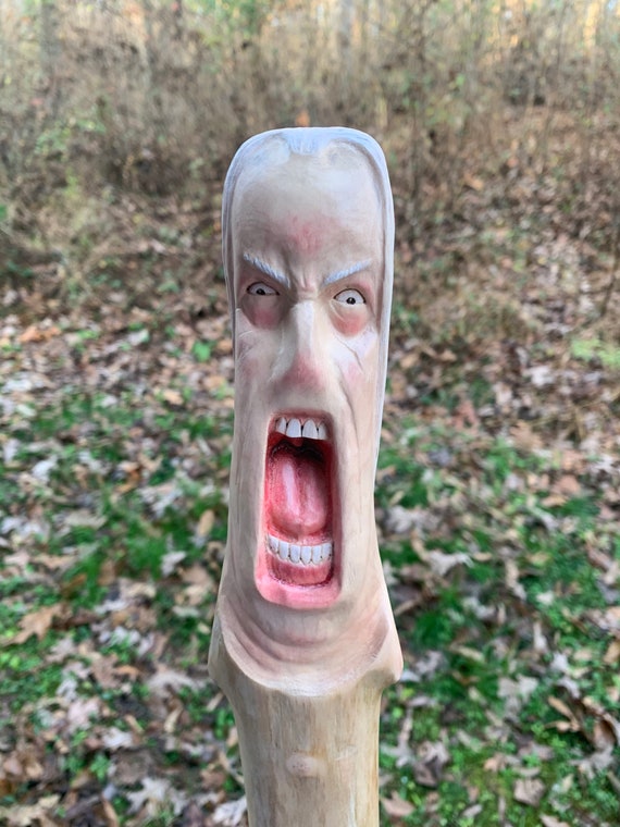 Walking Stick Wood Carving Dark Art Skull Wood Carving By Josh Carte Macabre Wood Art Hiking Stick Evil Art Creepy Art Hand Carved