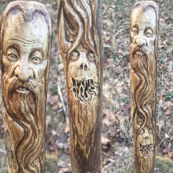 Walking Stick Wood Carving Hand Carved Wood Spirit By Joshcarteart Wood Carving Walking Sticks Whittling Wood Wood Decor 19