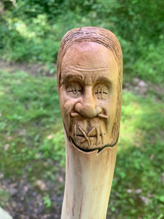 Buffallo Cane Walking Stick Wooden Cane Wood Carved Cane Carving Handmade Cane Stick Bison UkraineShopping From shop UkraineShopping 5 out of 5 stars (156) 156 reviews Sale Price $5850 $ 5850 $ 6500 Original Price $6500 (10% off). This is a wood carving of a wood spirit in a wood walking stick It is hand carved by me, Josh Carte This sculpture is one of a kind and there will never be another just like it It makes a perfect wood gift for him or her "Not Right Now" can be used as a walking cane to assist you in your hiking adventures. Carving your wood spirit Step #1 The first thing that you need to do is to draw the brow and approximate the hairline This one will function as your general guide regardless if there will be a slight movement on your carving in the latter part You also need to mark the brow and the nice You can also start to make cuts on the nose.