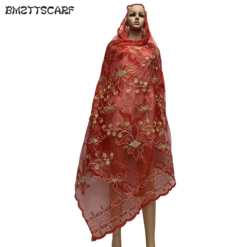 New African Red Scarfs Muslim Women Embroodery Transparent Scarf Soft Breathe Summer Scarfs Bm759 Women S Scarves Aliexpress