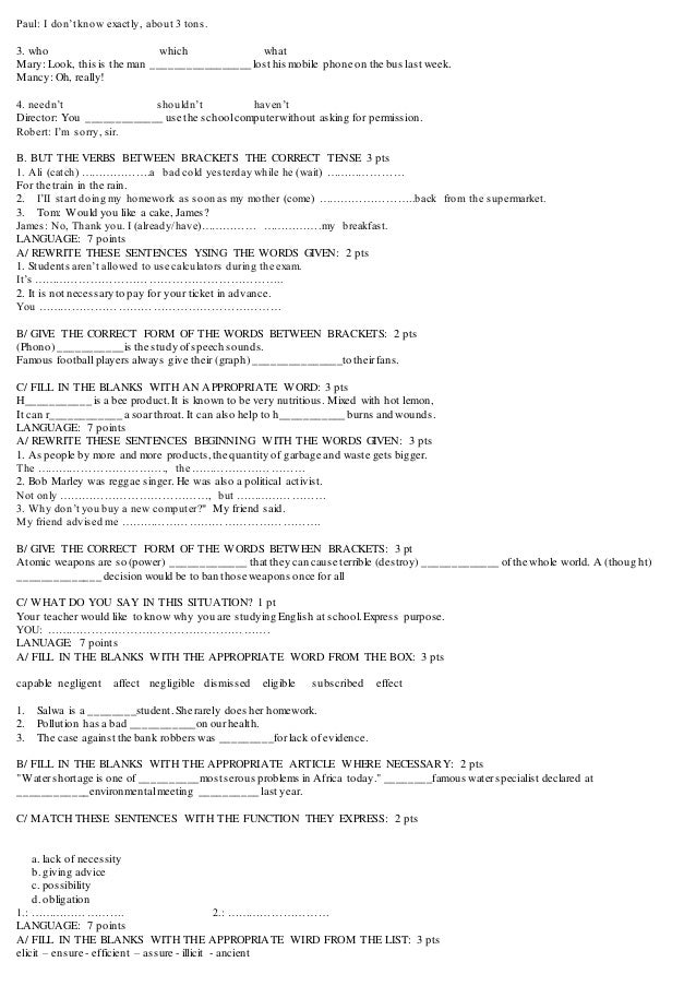 2 Bac Language Exercises Baccalaureate Exams 05 Till 10