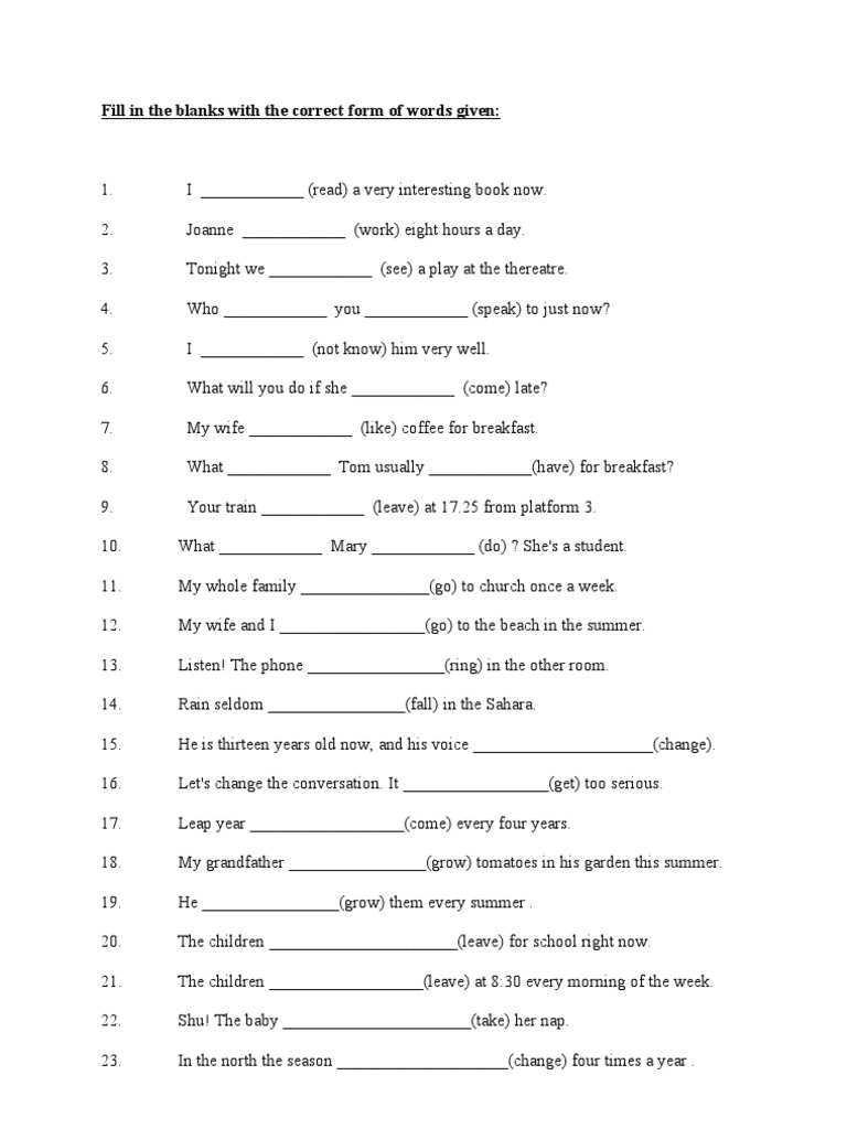 Fill In The Blank With Correct Words Grammertest Englishskills