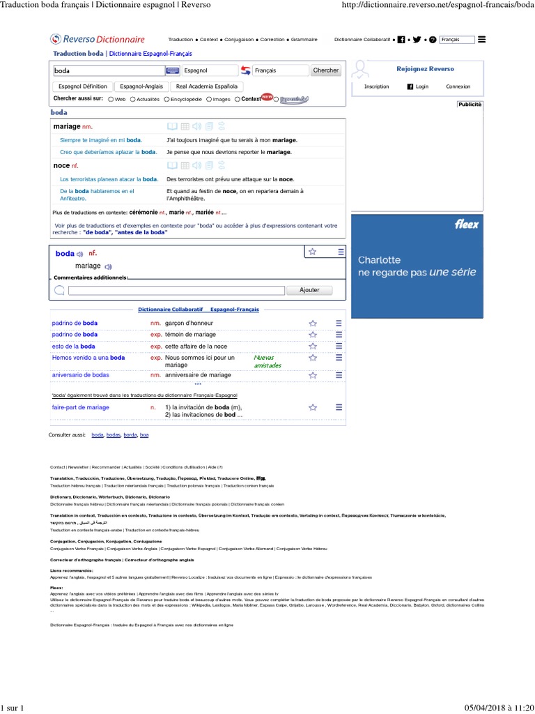 Traduction Boda Francais Dictionnaire Espagnol Reverso Dictionnaire Langue Francaise