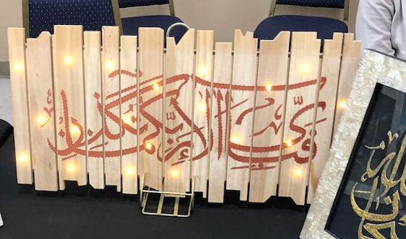 Panneau En Bois Eclairee Toile Calligraphie Arabe Etsy