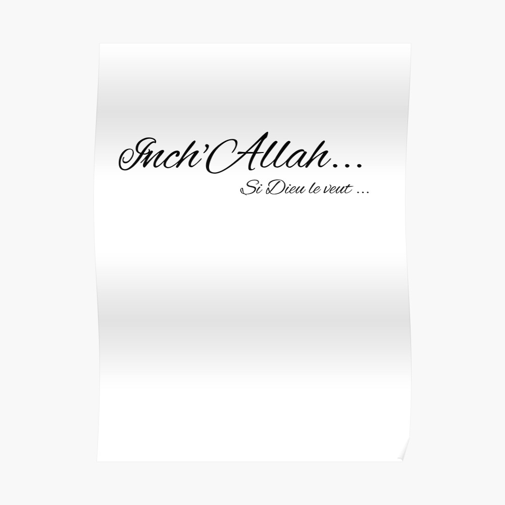 À l’occasion de l’Année de la calligraphie arabe, organisée par le ministère saoudien de la Culture en 21, nous nous intéressons à l’héritage historique de l’artisanat ancien et à son évolution à l’ère moderne. Style ta’ligh, calligraphie de Aboulfazl Sâvoji, XIXe siècle On peut donc considérer le ta’ligh comme étant le premier style calligraphique iranien pour le persan écrit en caractères arabes Le mot ta’ligh signifie en arabe "mélanger une chose avec une autre" Il ne fait pas figurer la vocalisation. Insha'Allah (Arabic إِنْ شَاءَ ٱللَّٰهُ , ʾin šāʾa llāh, ɪnˈʃælə), also spelled In sha Allah, is an Arabic language expression meaning "if God wills" or "God willing" The term is mentioned in the Quran Quran and Muslims are commanded to use it when speaking on future events, Quran 13–24 so it is also used to fulfill this Quranic command.