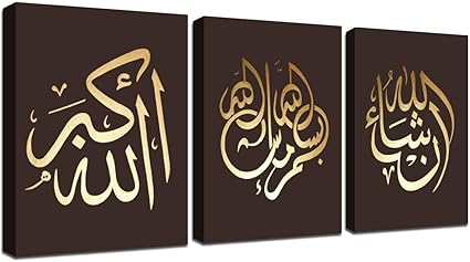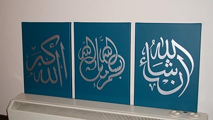 Lot De 3 Peintures A L Huile Calligraphie Arabe A La Main Art Islamique Encadre Et Tendu Sur Toile Pour Le Salon Amazon Fr Cuisine Maison