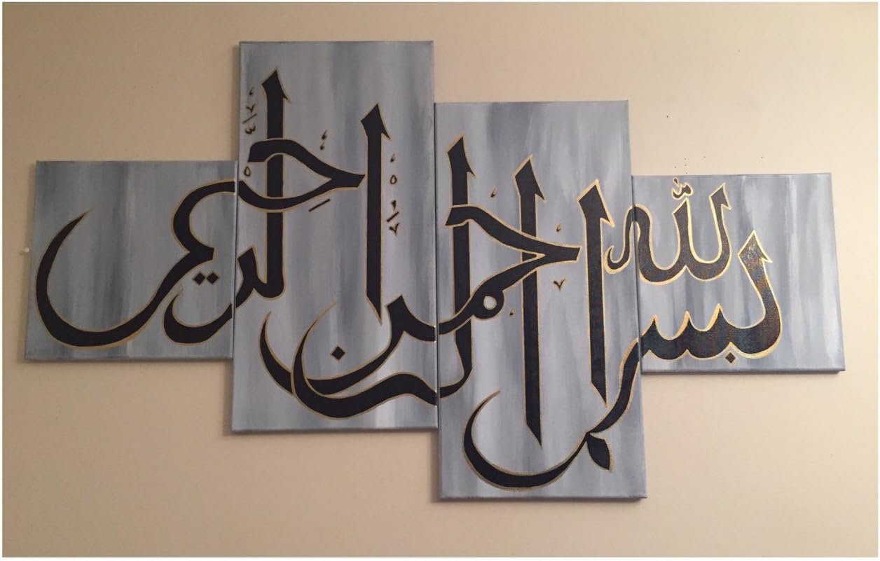 Lot De 4 Peintures A L Huile Sur Toile Tendue Sur Chassis En Bois Avec Calligraphie Arabe Peinte A La Main Contour Dore Art Mural Decoration Interieure Salon Pret A Suspendre Amazon Fr Cuisine