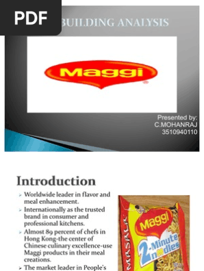 Traditional versions of Vietnamese dishes such as shaking beef and red rice call for Maggi Seasoning, a flavor enhancer with a huge global following that's only recently begun to gain traction in the United States Made from hydrolyzed wheat and/or other protein sources and chockfull of glutamic acid, it packs an umami punch on a par with that of soy sauce, though its flavors are quite different. Maggi Strengths Below are the Strengths in the SWOT Analysis of Maggi 1 Maggi is a market leader in noodles category with high brand loyalty 2 Excellent advertising of Maggi makes its a top of the mind brand 3. Brand Study Maggi 3 TABLE OF CONTENTS SNO PARTICULARS PAGENO 1 Executive Summary 5 2 Background Of Nestle India 6 3 The Company’s History 8 4 Management Structure 10 5 CSR Activities 11 6 Introduction Of The Project 14 7 Brand Story 16 8 Maggi Brand Extension 17 9 Brand Name And Logo 22 10 Jingles And lines 2712 Management Strategies.