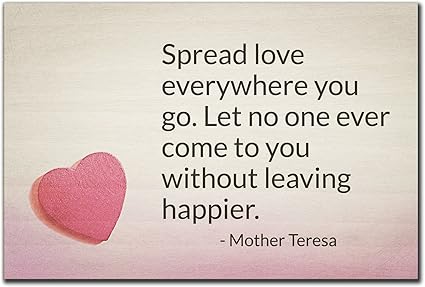 Spread love everywhere you go first of all in your own house Let no one ever come to you without leaving better and happier Be the living expression of God’s kindness;. We also use thirdparty cookies that help us analyze and understand how you use this website These cookies will be stored in your browser only with your consent You also have the option to optout of these cookies But opting out of some of these cookies may have an effect on your browsing experience. Spread Love Everywhere You Go Saint Teresa of Calcutta Famous Motivational Inspirational Quote Cool Wall Decor Art Print Poster 12x18 Product information ColorMulticolor / 59 SizePoster 12x18 inch Item Weight 16 ounces Manufacturer Poster Foundry ASIN B01LRB4452 Item model number.