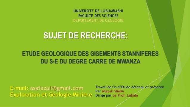 ABSTRACT Colline 1 and Colline 6 of Luntukulu are to about fifty kilometers to the Southwest of Bukavu city (SouthKivu/RDC) Luntukulu is a mining district where are exploited tin, tungsten and gold ores It is located on horseback between. La partie centrale de l'Arc cuprifère du Katanga étude géologique Armand François Published in 06 in Tervuren by Musée royal de l'Afrique centrale Services Reference details More from Armand François;. Le Baccalauréat spécialisé en génie géologique Bing offert à l'UQAC a une durée totale de 4 ans offert en régime régulier à temps complet ou en régime régulier à temps partiel De plus, tu auras également la possibilité d'effectuer la 1 re année du programme au campus de RouynNoranda de l'UQAT.