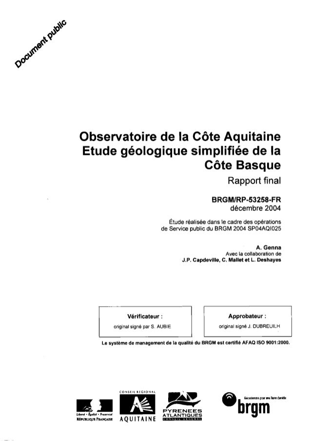 Etude géologique et paléontologique de la formation d'eau douce infracrétacée du Jura et en particulier de Villerslelac, 1865, (with Auguste Jaccard) – Geological and paleontological study on the formation of infraCretaceous freshwater in the Jura Mountains and in particular, VillersleLac. Etude de sol obligatoire pour la ventes de terrain à bâtir Elle doit fournir un modèle géologique préliminaire et les principales caractéristiques géotechniques du site ainsi que les principes généraux de construction pour se prémunir du risque de mouvement de terrain différentiel consécutif à la sécheresse et à la. BUREAU D'ETUDE GEOLOGIQUE ET GEOPHYSIQUE, SARL coopouvrière production & crédit, a débuté son activité en mai 19 Bruno Marie DUPOUY est gérant de la société BUREAU D'ETUDE GEOLOGIQUE ET GEOPHYSIQUE Le siège social de cette entreprise est actuellement situé 15 rue du Meunier 440 Sautron BUREAU D'ETUDE GEOLOGIQUE ET GEOPHYSIQUE évolue sur le secteur d'activité Activités d.