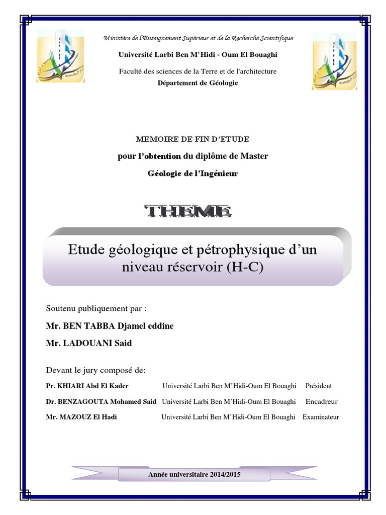 Etude Geologique Et Petro Physique D Un Niveau Reservoir H C Gres Argile