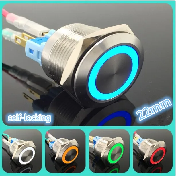 5 Set Stainless Steel Metal Led 22mm Push Button Switch 3v 5v 6v 12v 24v 48v 110v 2v Car Ring Light Switch Self Latching Switch Self Light Aliexpress