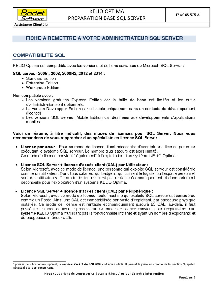 Preparation Base Sql Server Pour Kelio Optima Esac 05 525 A Sauvegarde Informatique Serveur Informatique