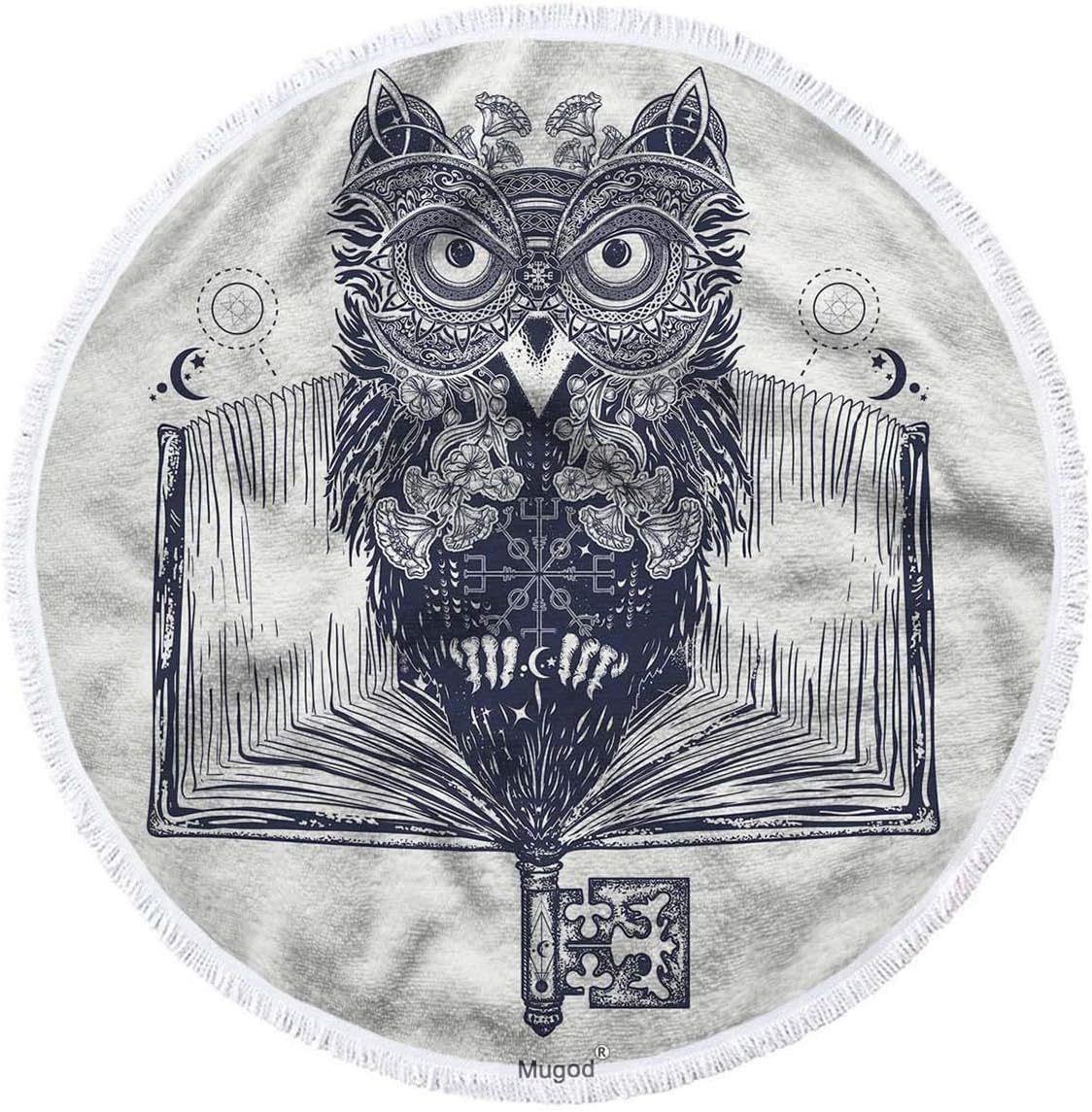 Amazon Com Mugod Beach Towel Owl And Open Book Tattoo And T Shirt Design Decorative Beach Round Towel Blanket With Tassel Multi Purpose Soft Absorbent Bath Towels 63 Inches Home Kitchen