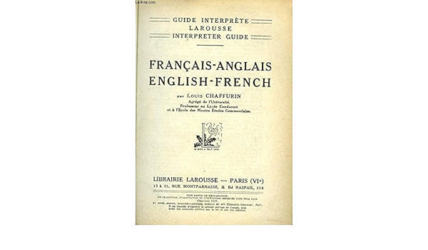 Francais Anglais English French Louis Chaffurin Guide Interprete Larousse 1938 Ebay