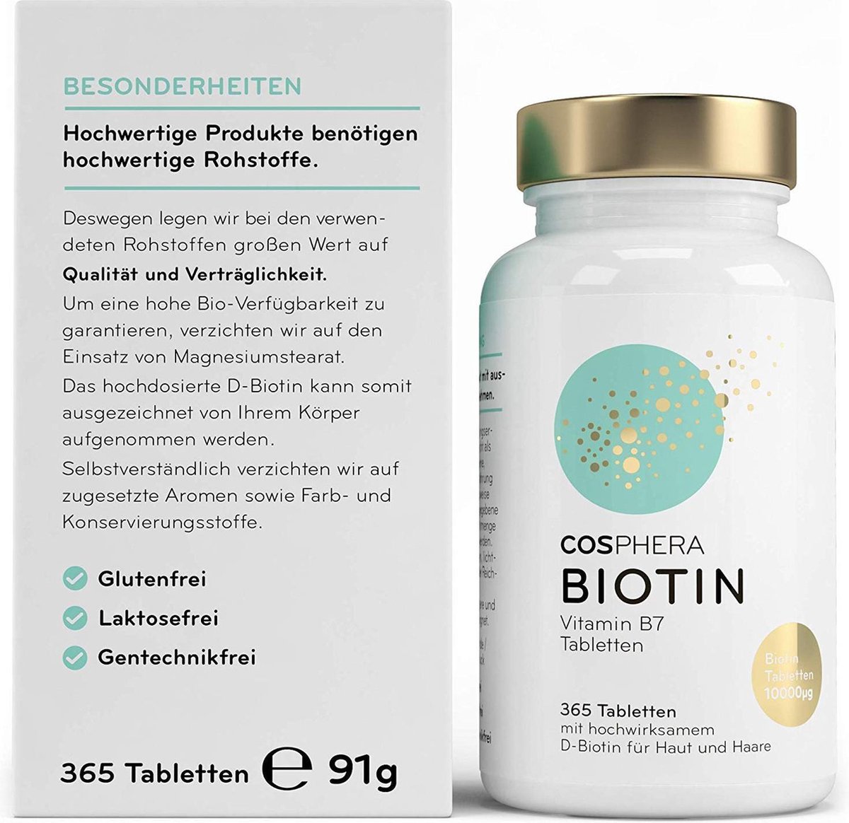 Cosphera Biotine Tabletten Hoge Dosis Met 10 000 Mcg D Biotine Per Tablet 365 Veganistische Tabletten In Voorraad Van 1 Jaar Vitamine Voor Haar Huid En Nagels Amazon Nl