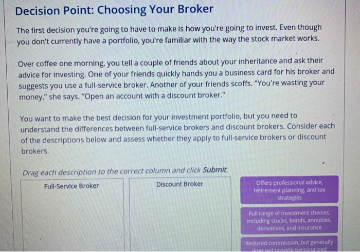 Solved Decision Point Choosing Your Broker The First Dec Chegg Com