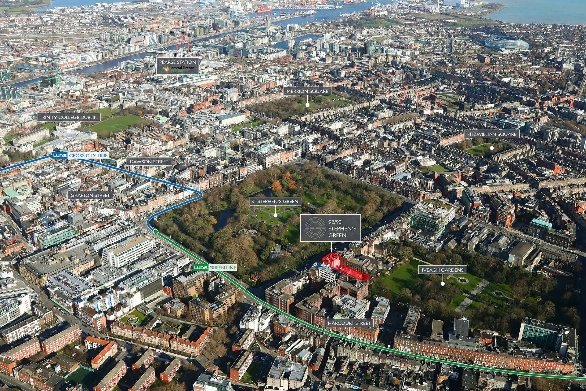 94 St Stephen's Green is Kennedy Wilson's Irish headquarters that sits adjacent to Russell Court (a Kennedy Wilson asset that serves as the KPMG headquarters) and across the Green from The Shelbourne Hotel Location Dublin, Ireland. St Stephen’s Green is an area of around 9 hectares that has been providing rest, tranquillity and peace for visitors and the residents of Dublin for 350 years Whilst the gardens began to take shape in the 1600s, the general outline and potential of this area began to really take shape during the 1700s. St Stephen's Green is located in City Centre Dublin It's in a historic neighborhood well known for its great entertainment and bars If you'd like to find things to see and do in the area, you might like to visit Grafton Street and St Patrick's Cathedral.