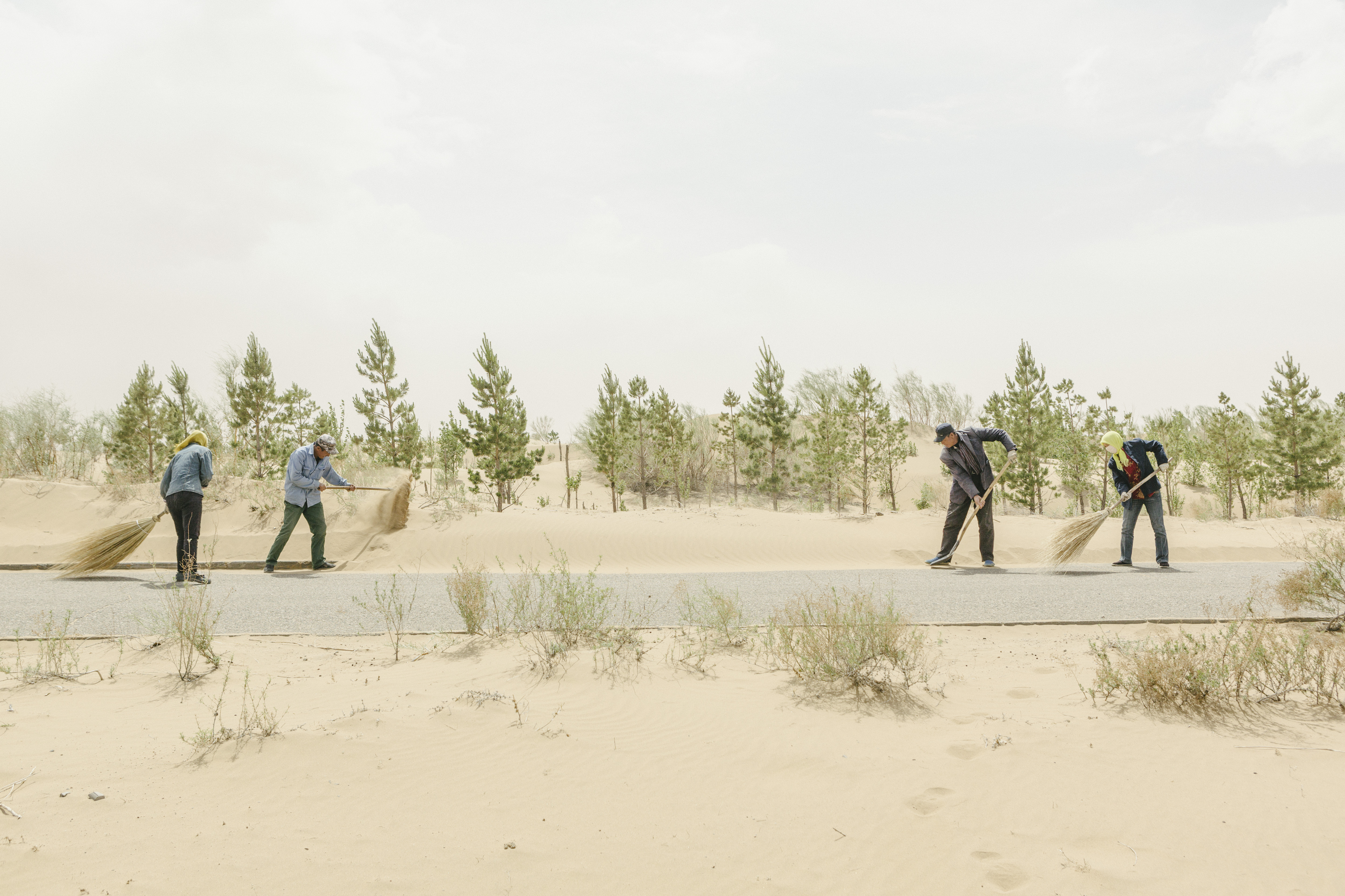 Je Vis Au Xinjiang Un Pere Et Un Fils Construisent Une Grande Muraille Verte Cgtn