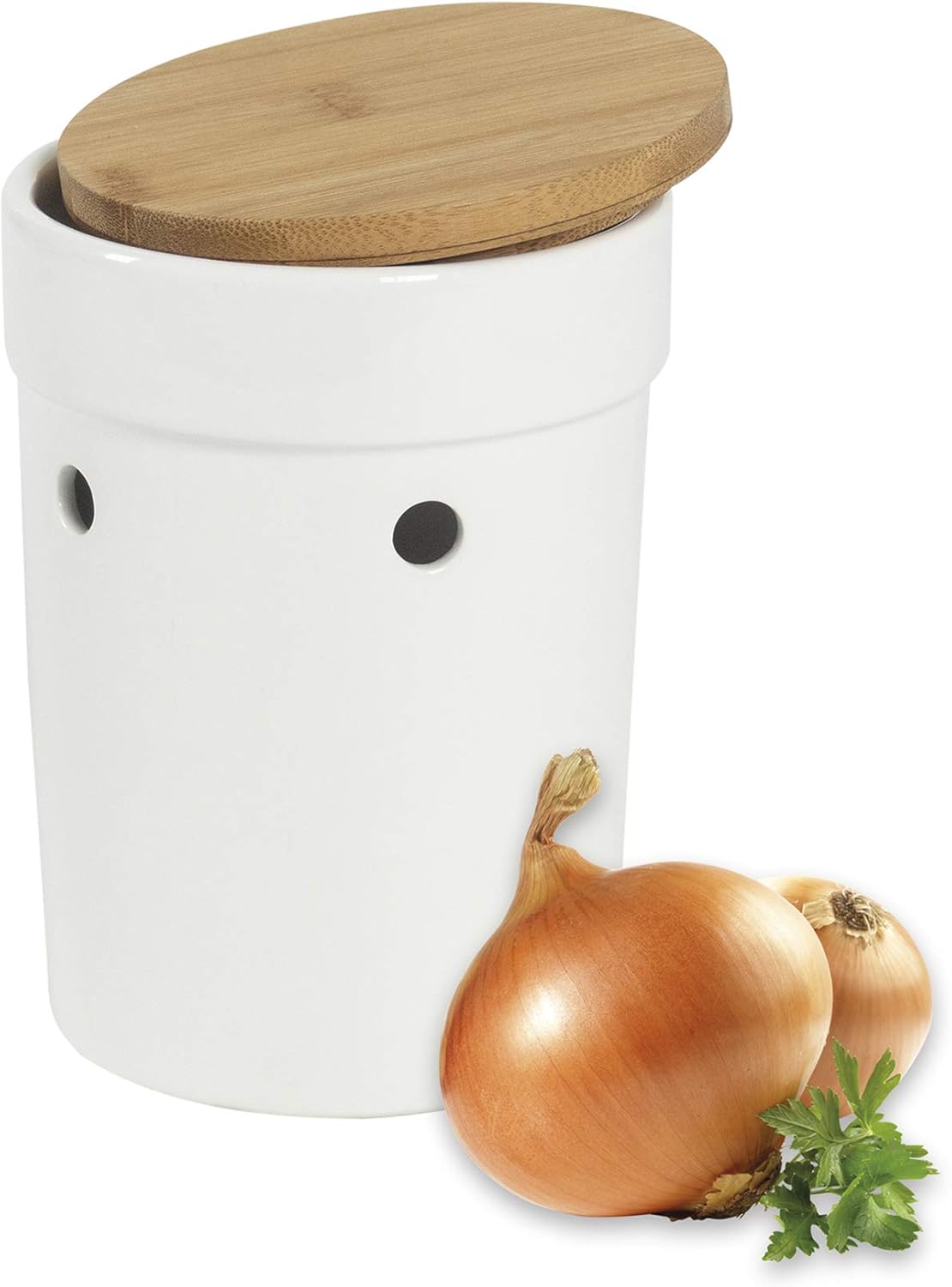 Kela Pot A Oignon En Ceramique Couvercle Bambou Salena Hauteur 21 Cm 167 Blanc Bois Amazon Fr Cuisine Maison