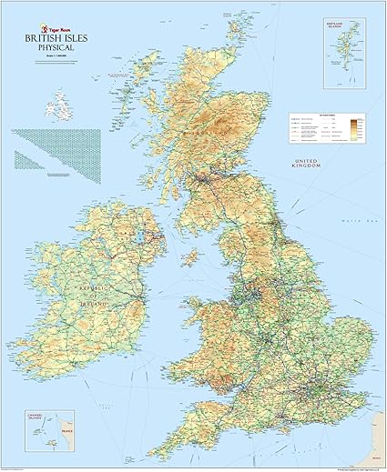 Grandes Iles Britanniques Anglais Physique Carte En Vinyle 1 X 100 Cm Gm Amazon Fr Fournitures De Bureau