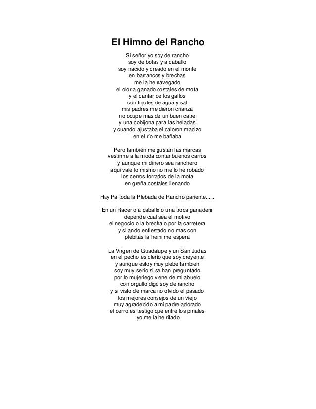 I give you FULL permission to download & use this video & audio in any way you pleaseDownload https//nofileio/f/2C4gGnGzOFB. D,A,D,A,D,Eb7,A A Eb7 A Si señor yo soy de rancho Eb7 soy de botas y a caballo soy nacido y creado en el monte en barrancos y brechas A me la he navegado D Eb7 el olor a ganado costales de mota A y el cantar de los gallos A Eb7 A con frijoles de agua y sal Eb7. Intro D A D A D E A A E A Si señor yo soy de rancho E soy de botas y a caballo soy nacido y creado en el monte en barrancos y brechas A me la he navegado D E el olor a ganado costales de mota A y el cantar de los gallos A E A con frijoles de agua y sal E mis padres me dieron crianza no ocupe mas de un buen catre A y una cobijona para las heladas D E y cuando ajustaba el caloron macizo A en.