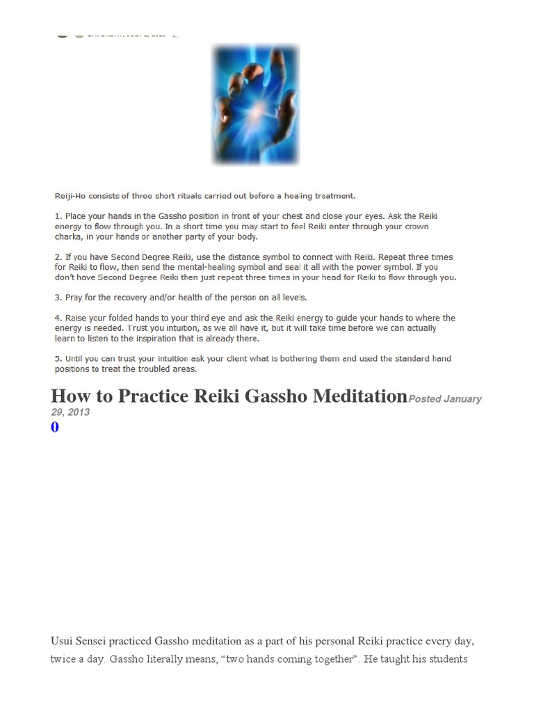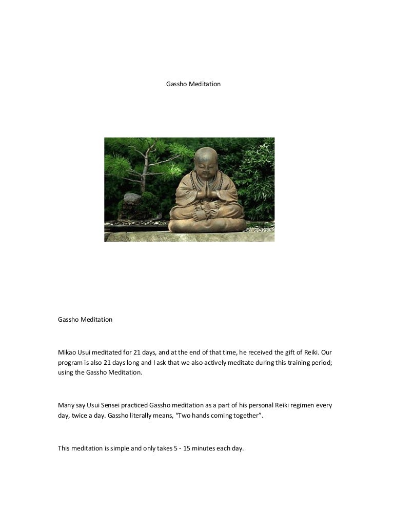 Maybe not↩ 2 Exodus 3;. Gassho means prayer position and this is the first stage of the meditation, to activate the energies and show respect Once you feel comfortable practicing Gassho you can move on to practicing the rest of the Hatsureiho Reiki healing meditation technique. Today, be kind to all living beings.