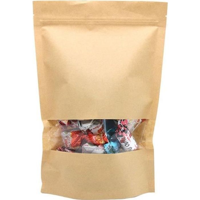 Mkishine 100 Sacs En Papier Kraft Zip Avec Fenetre Sac D Emballage Biodegradable Avec Fenetre Transparent Pour Bonbons Patisserie Cadeau Amazon Fr Cuisine Maison