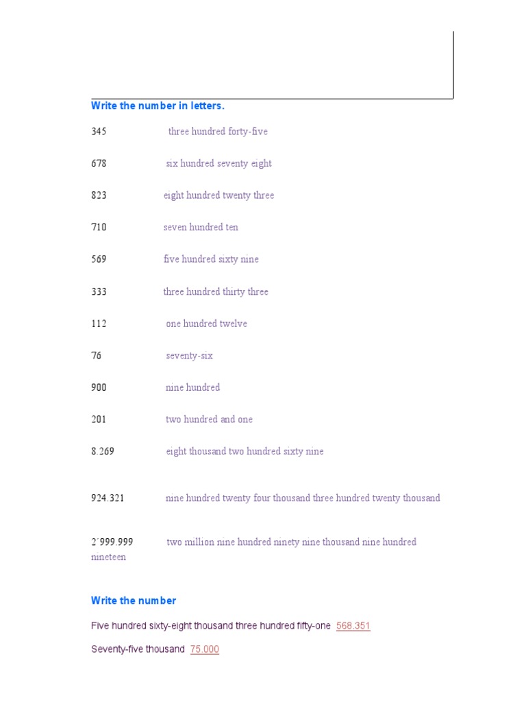 Spire More Exercises In Writing Numbers In Words And Numerals