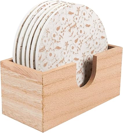 6 Dessous De Verre En Bois Rond Boisson Et Sous Verres Avec Support De Table Blanc Imprime Floral 9 7 Cm Amazon Nl