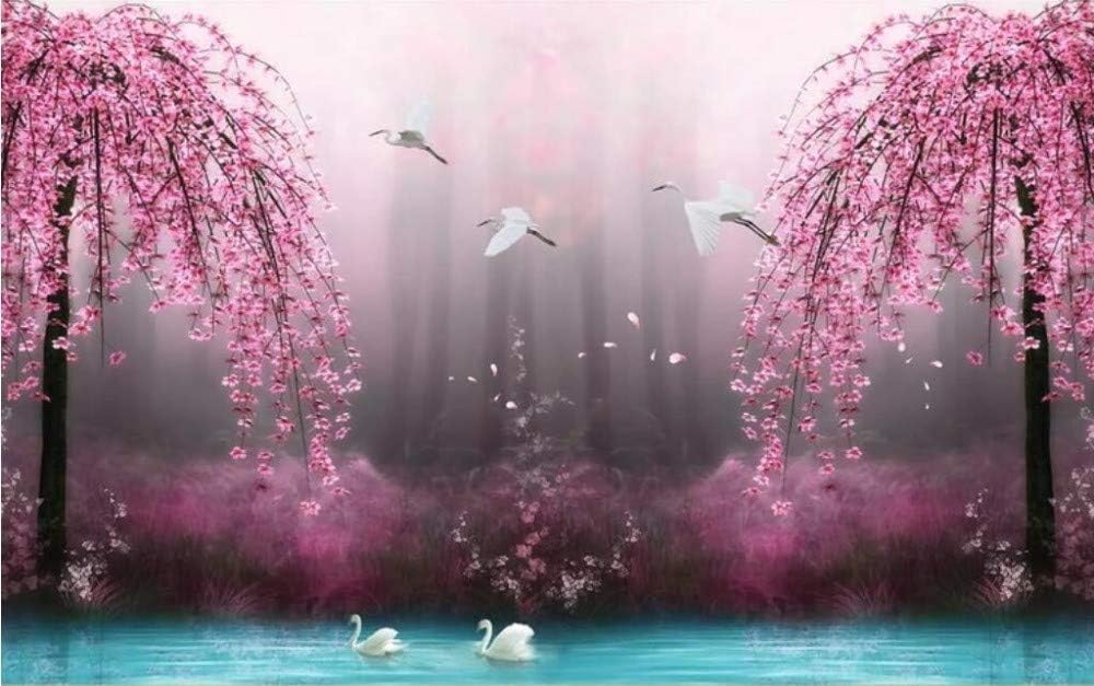 Addflower Custom Wallpaper Hd Fantasy Wonderland Peach Blossom Crane 3d Tv Background Walls Cherry Blossom Mural 3d Wallpaper 350x245 Cm 137 8 By 96 5 In Amazon Co Uk Diy Tools
