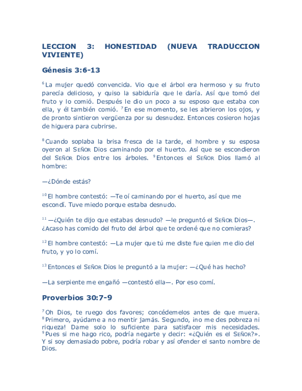 Doc Leccion 3 Honestidad Nueva Traduccion Viviente Octavio Davila Academia Edu