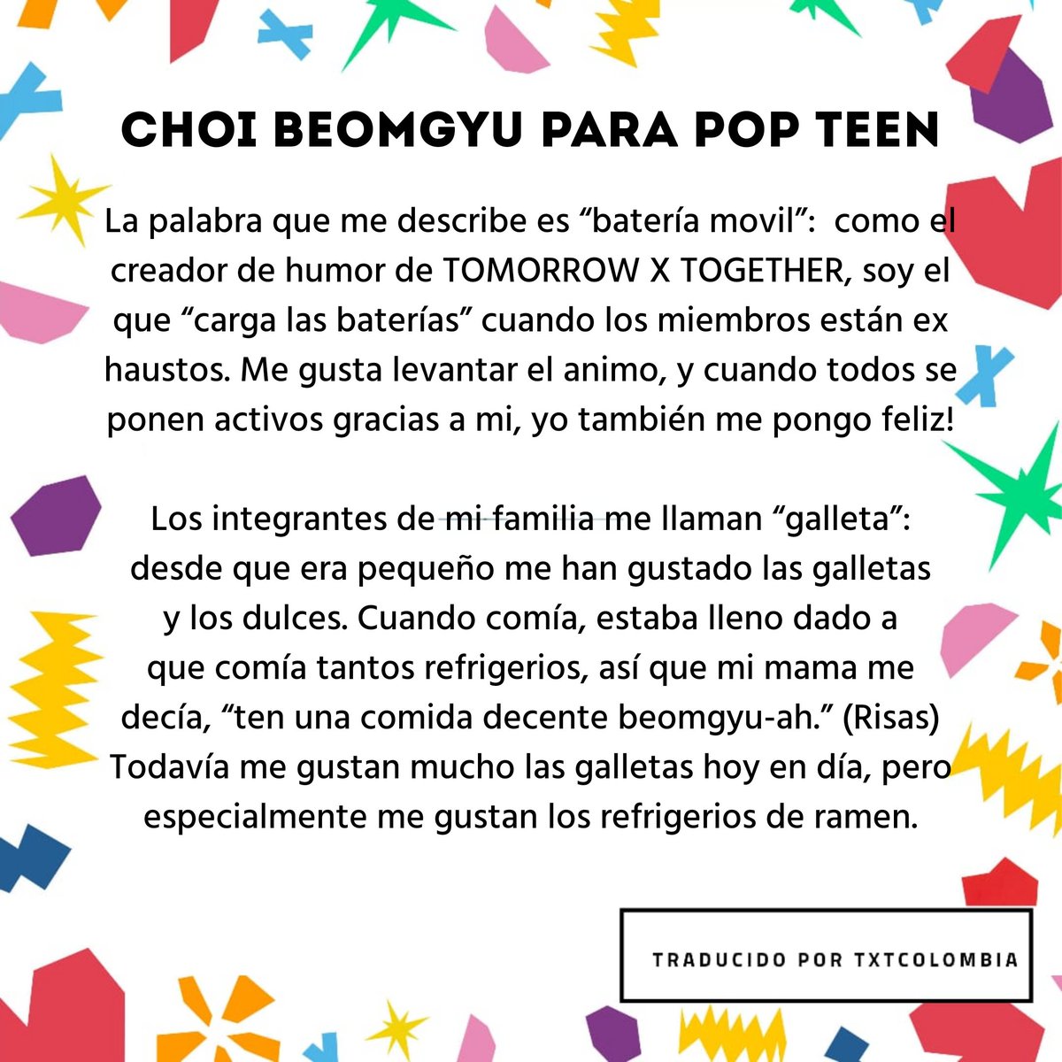 Uzivatel Txt Colombia Oficial Na Twitteru Entrevista Choi Beomgyu Para La Revista Pop Teen Traduccion Ingles Txtonnews Traduccion Espanol Txtcolombia Tomorrow X Together Txt 투모로우바이투게더 Txt Members Txt Bighit T Co