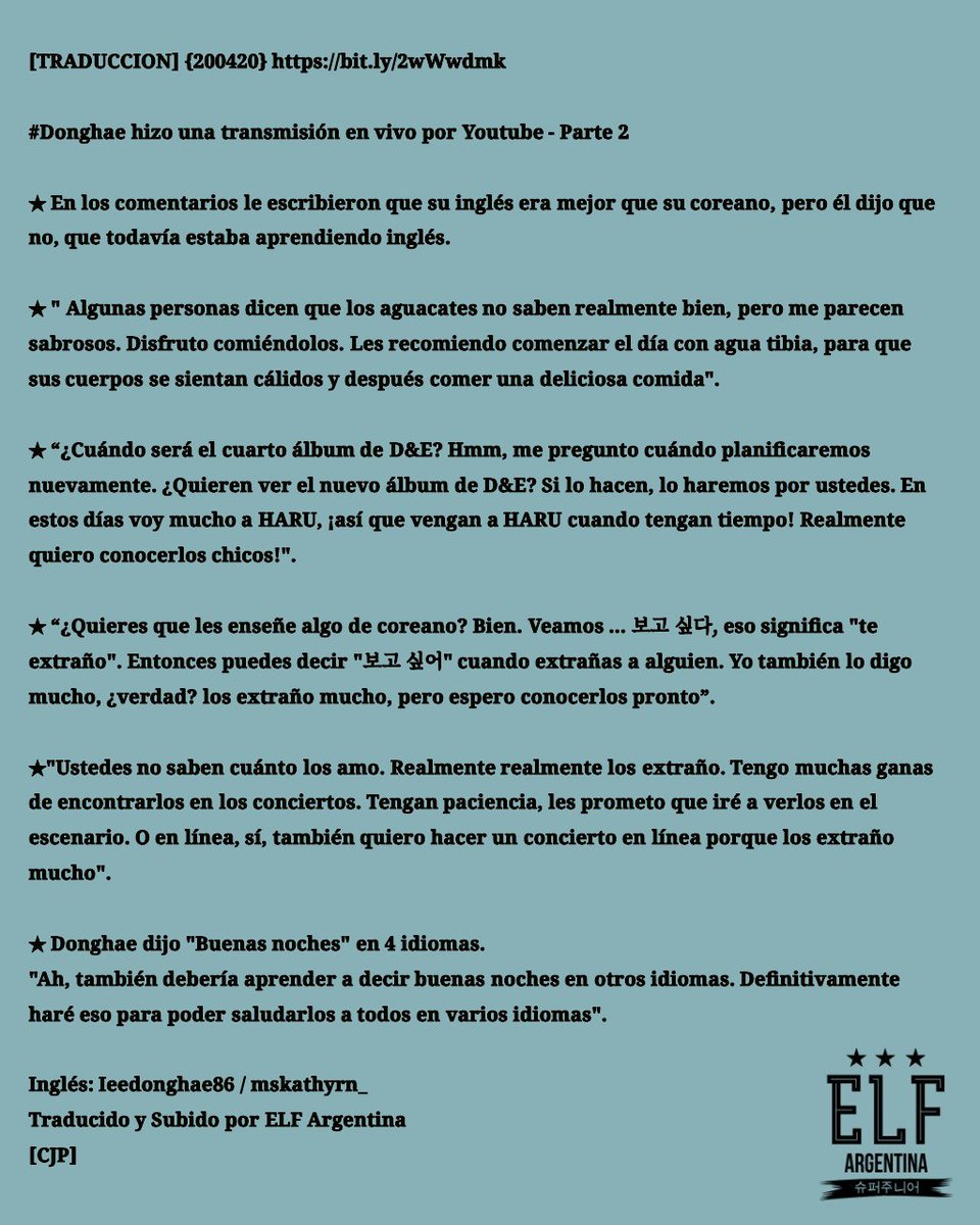 Elf Argentina Traduccion 04 T Co Sehmukg7zx Donghae Hizo Una Transmision En Vivo Por Youtube Parte 2 Ingles Ieedonghae86 Mskathyrn Traducido Y Subido Por Elf Argentina Cjp Repost Lola Donghae