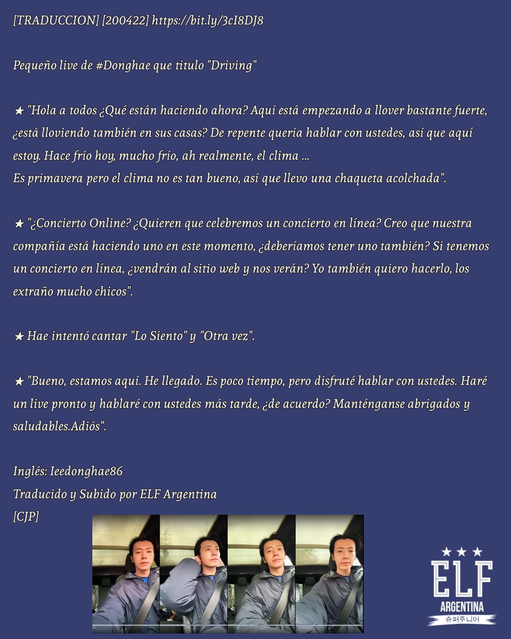Elf Argentina Traduccion 0422 T Co Uquampmiaf Pequeno Live De Donghae Que Titulo Driving Ingles Ieedonghae86 Traducido Y Subido Por Elf Argentina Cjp Repost Lola Donghae T Co Uxoagevkes