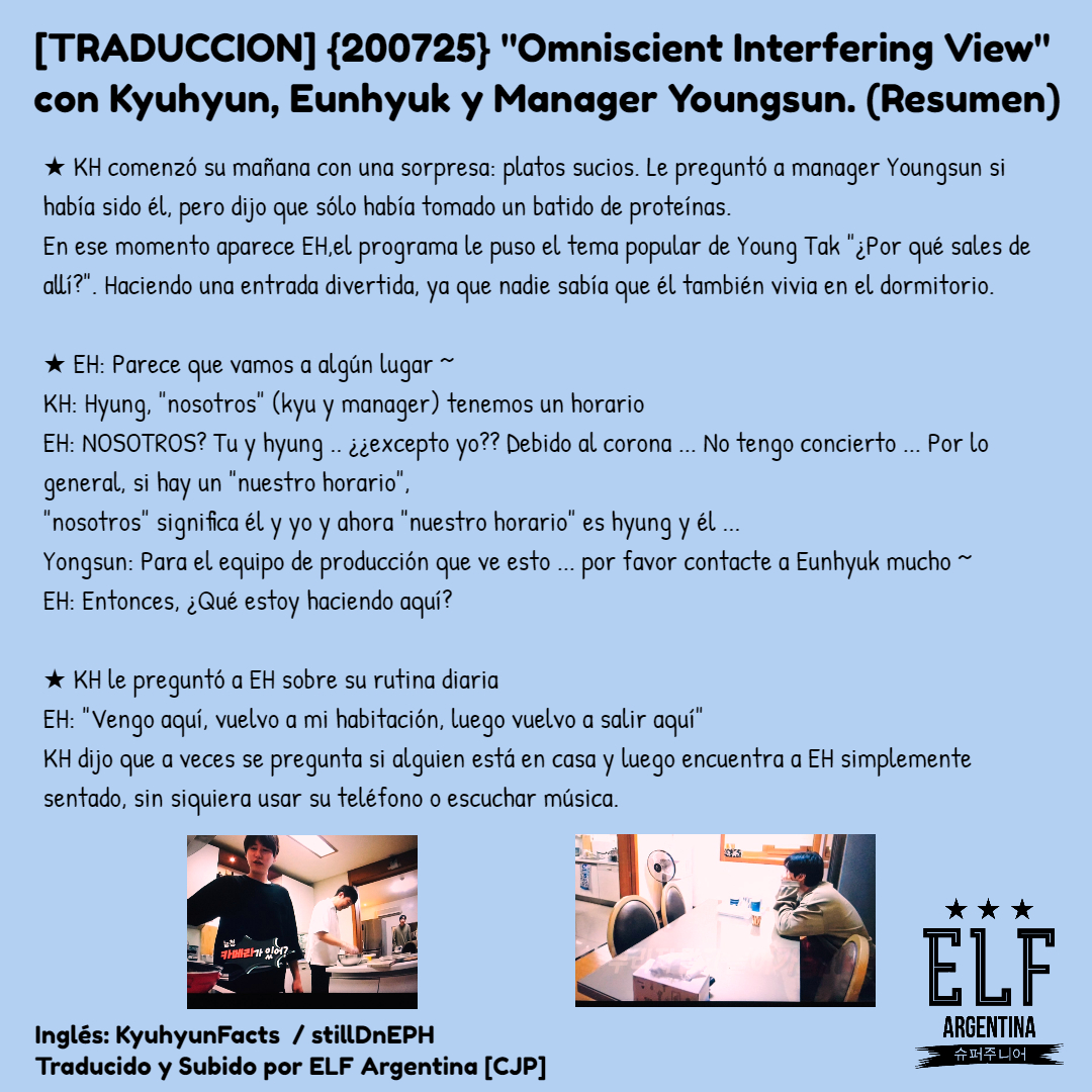 Elf Argentina على تويتر Traduccion 0725 T Co 2bldvkfpjr Omniscient Interfering View Kyuhyun Eunhyuk Y Manager Youngsun Muy Divertido Y Con Muchisimos Detalles Les Compartimos Un Pequeno Resumen Ing Kyuhyunfacts Stilldneph