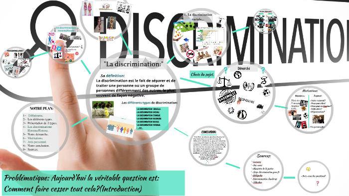 Les différents types de discrimination Discrimination raciale Discrimination sexuelle Discrimination fondée sur la situation de famille Discrimination fondée sur l’appartenance à une ethnie, une race ou une nation Discrimination fondée sur l’orientation sexuelle Discrimination en raison de la grossesse. Les enfants aux pinceaux pour les dernières couleurs de« La tête dans les nuages » Cet été, venez nous rencontrer !. Janvier , 21 La discrimination consiste à traiter une personne, un groupe ou une institution d'une manière différente et nuisible Cela peut être dû à différentes raisons race, sexe, sexe, idées, lieu d'origine, apparence physique, etc La discrimination n'est pas quelque chose de nouveau, car l'humanité a toujours discriminé d'autres personnes en raison de leurs ressources, de leurs origines ou de leur intelligence, et même de peuples entiers en raison de leurs conceptions.