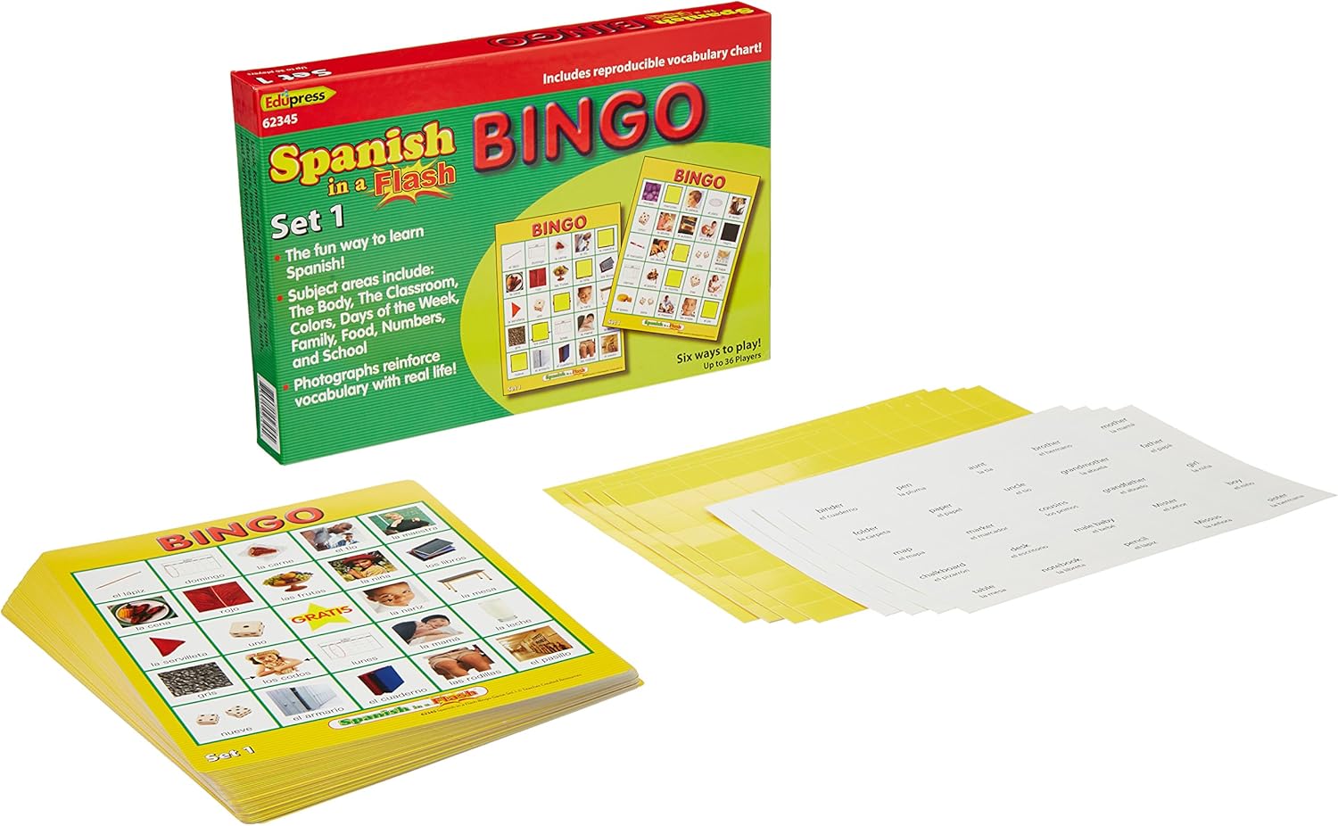 This game be played independently and include one page for each set of multiplication facts, and then 3 mixed review practice games. Express HD, Double Deuce Poker HD, and More!. Spanish in a Flash bingo game, set 1 has photographic images and reproducible vocabulary chart Edupress® Spanish In A Flash Bingo game set 1 measures 7" x 9" and is ideal for age group of 3 8 yrs Card set includes 100 calling cards and 500 bingo markers.